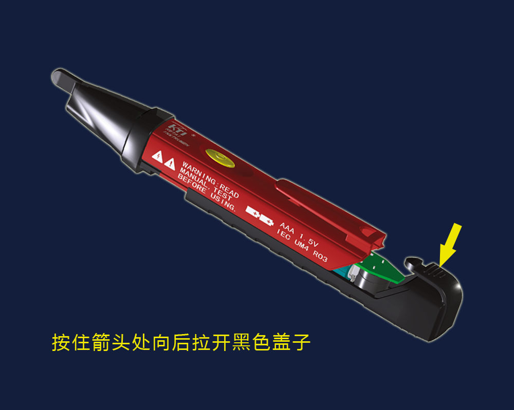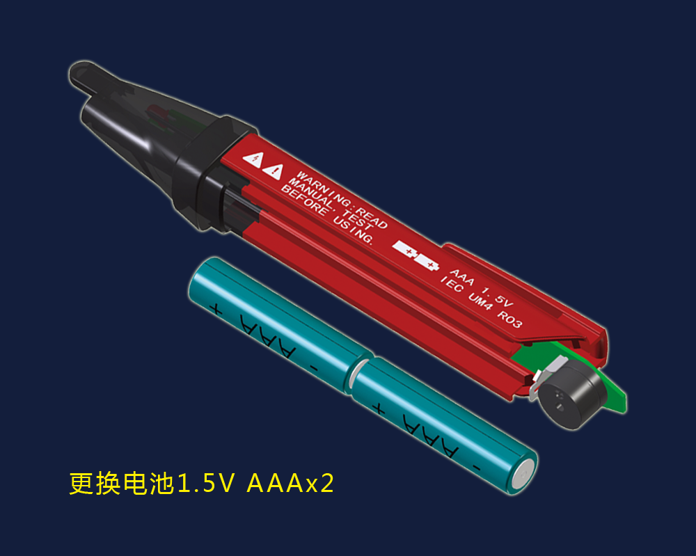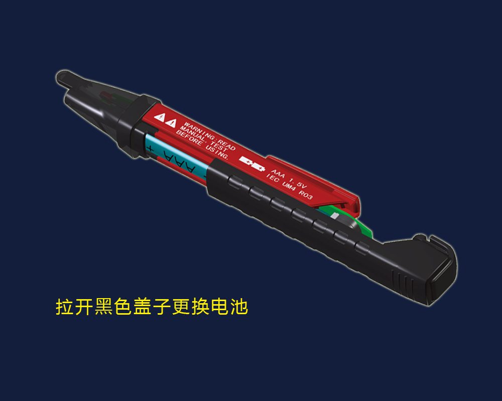 在待測(cè)狀態(tài)下,將檢測(cè)器的探頭,靠近有交流電壓的被測(cè)物體,紅燈閃爍,綠燈熄滅,蜂鳴連續(xù)發(fā)聲,說(shuō)明檢測(cè)到交流電壓。
