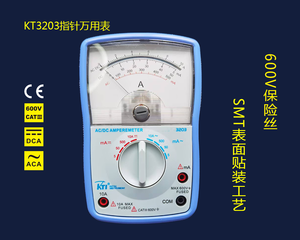 KT3201 KT3202 KT3203 KT3204四款高精度萬用表是為歐洲學生用表專門設計的。KT3201是一款高靈敏度,高精度萬用表。