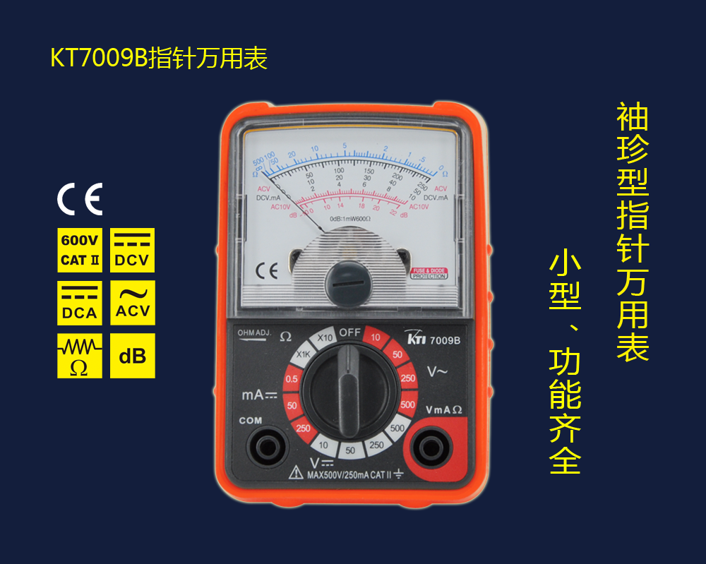 電 阻 5KΩ(Rx10), 500KΩ(Rx1K) (±4.0% f.s)