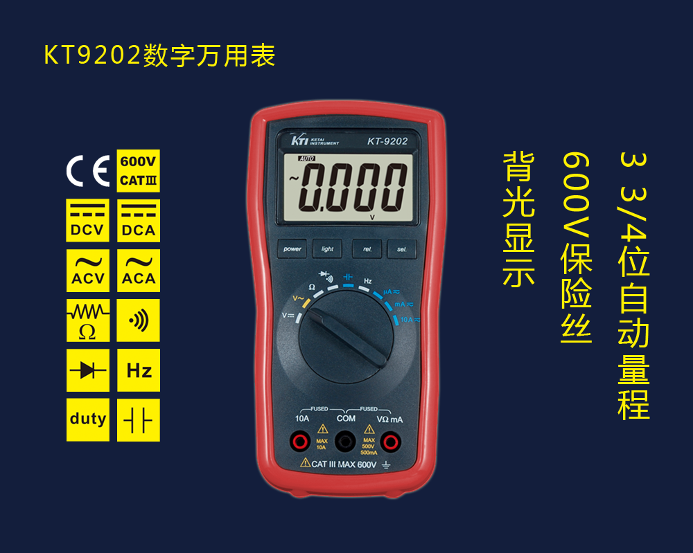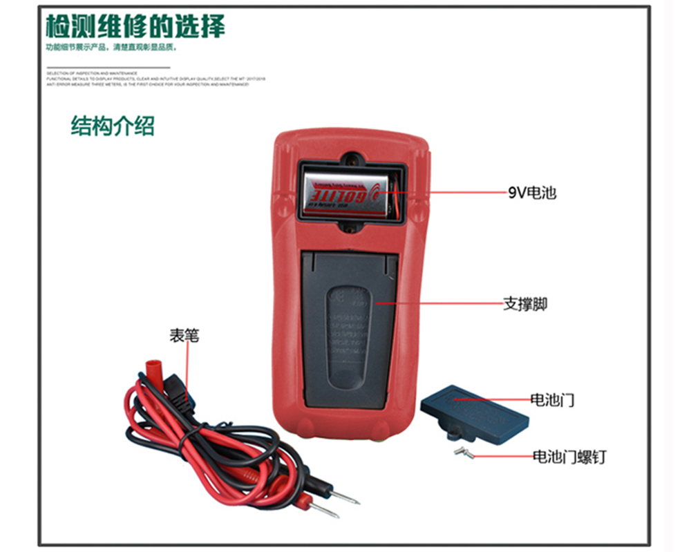 ● 配件包括:9V 電池,護(hù)套,表筆,說明書,彩盒