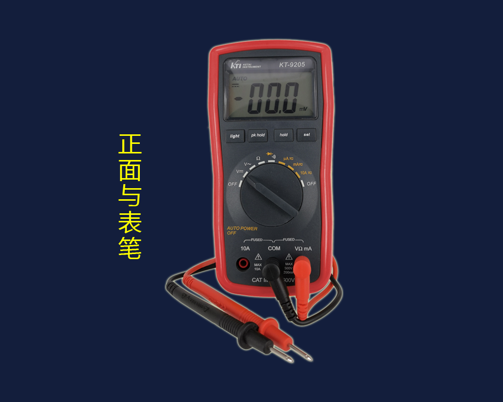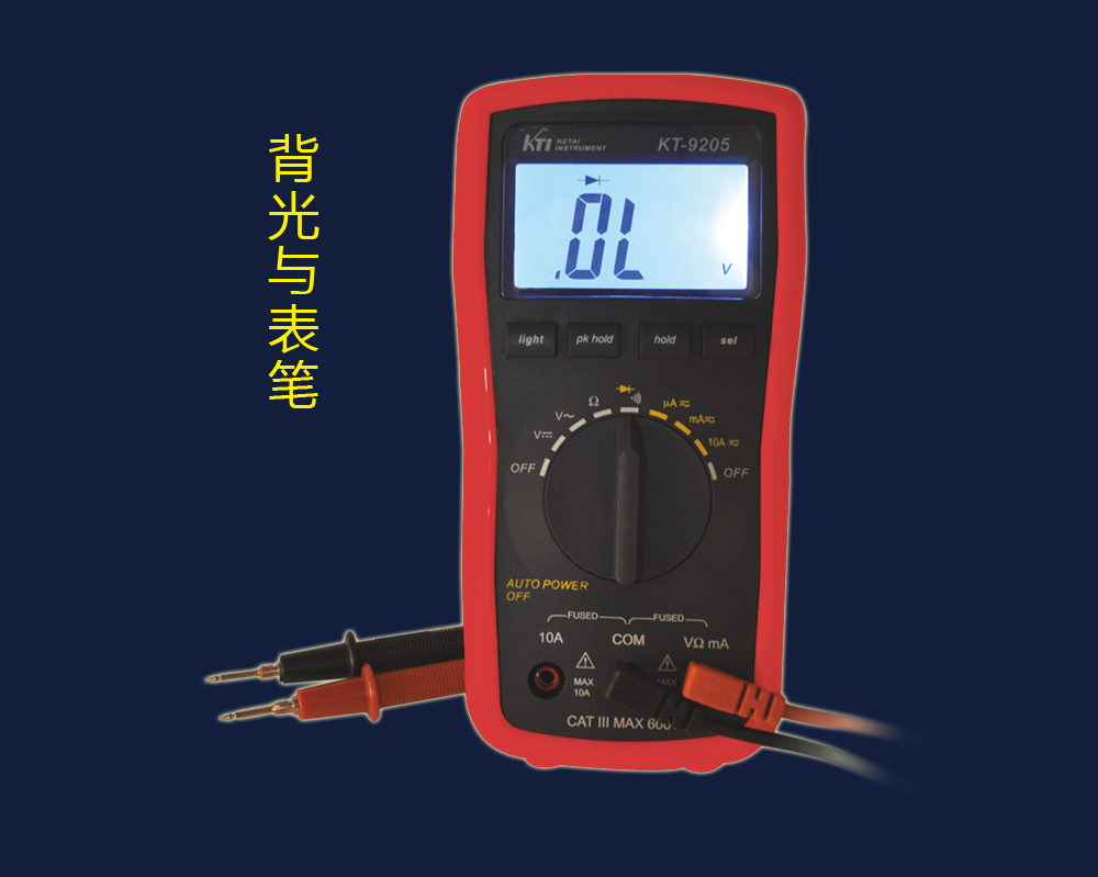 ● 配件包括:9V 電池,護套,表筆,K 型探頭,說明書,彩盒