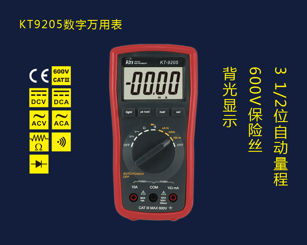 ● 3 1/2 位數字萬用表,顯示讀數1999