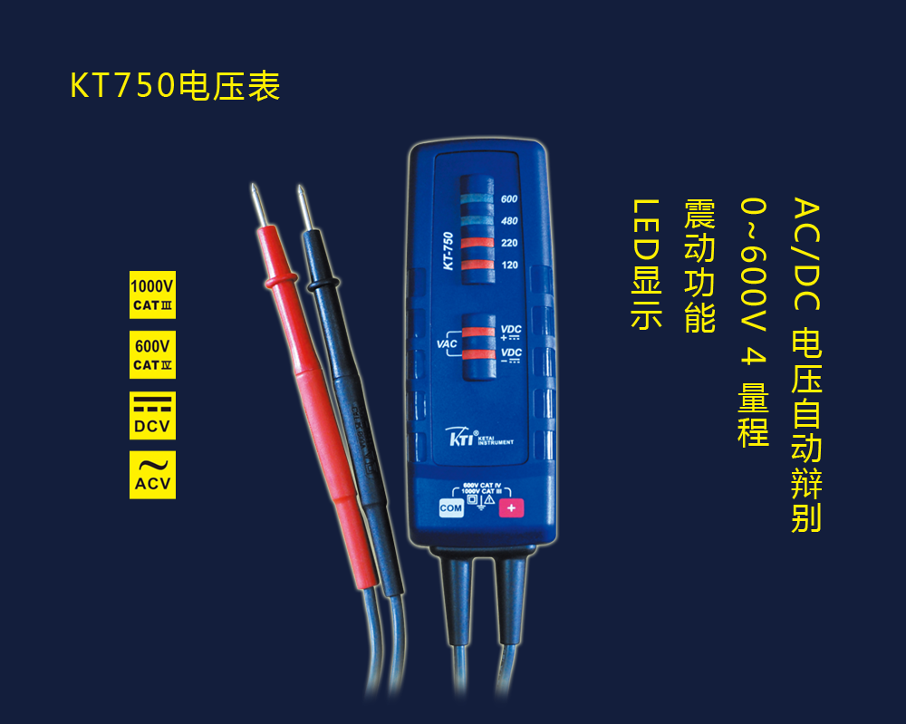 ● 交直流電壓自動判別,無需改變檔位,使用于工程測量 ● 高亮度指示燈,指示被測電壓 ● 設置震動器提示接近高電壓危險 ● 符合 CAT Ⅳ 600V 安全標準 ● 3 x AAA 供電 ● 凈含量: 230g