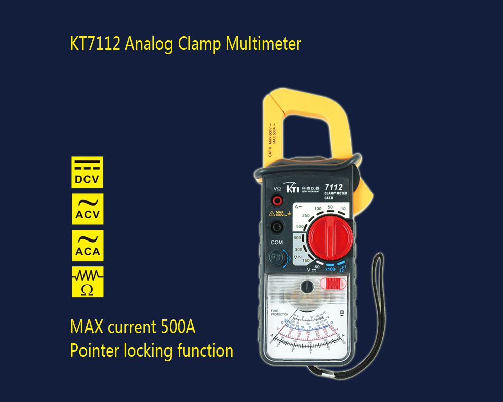The KT7112 analog clamp meter features the lock pin function, which can also be considered as "hold" function. In some measurements, the reading of the pointer cannot be seen directly,in such cases, the lock pin can be pushed to lock the pointer and hold the reading after the measurement is completed, release the lock pin to return to normal state.