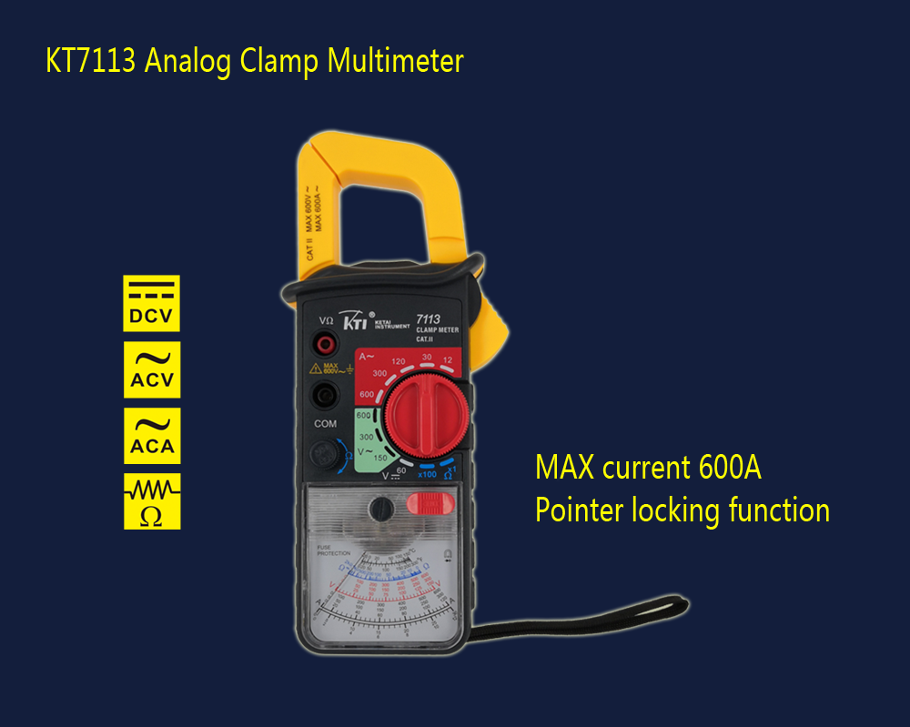 The KT7113 analog clamp meter features the lock pin function, which can also be considered as "hold" function. In some measurements, the reading of the pointer cannot be seen directly,in such cases, the lock pin can be pushed to lock the pointer and hold the reading after the measurement is completed, release the lock pin to return to normal state.