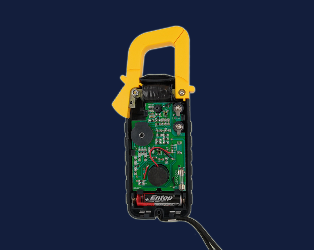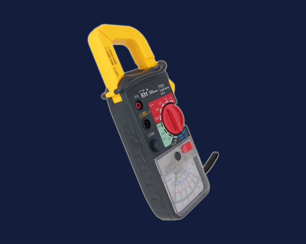 The analog clamp meter senses the current by conductor and through internal conversion the meter head indicates the reading.