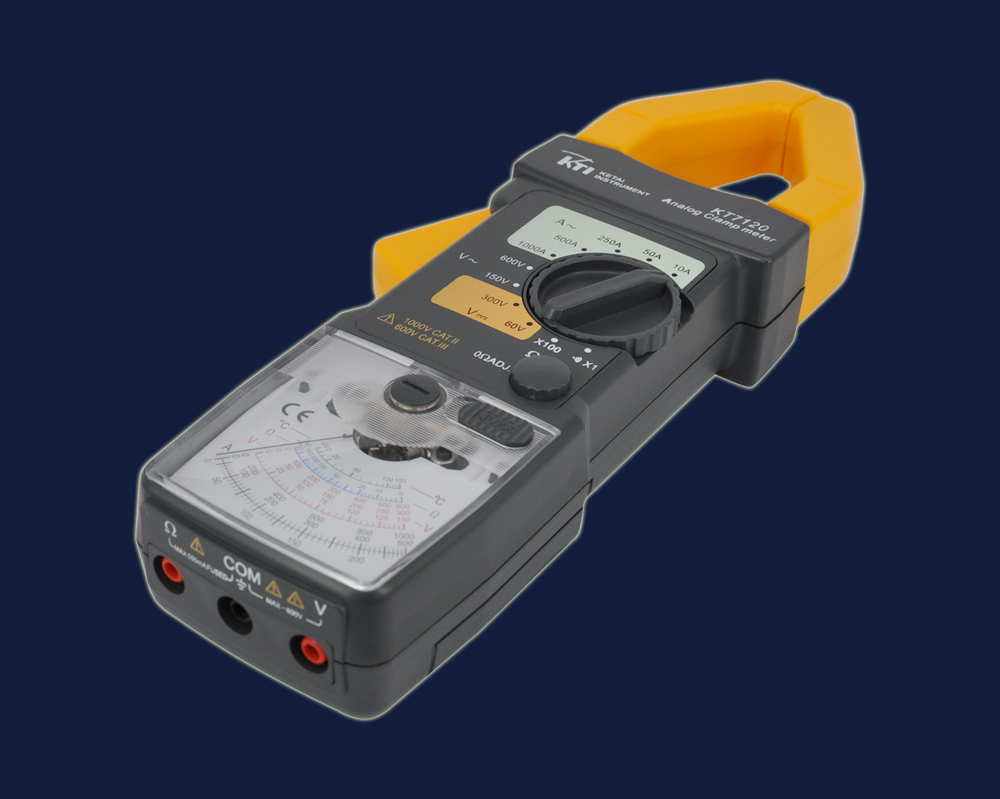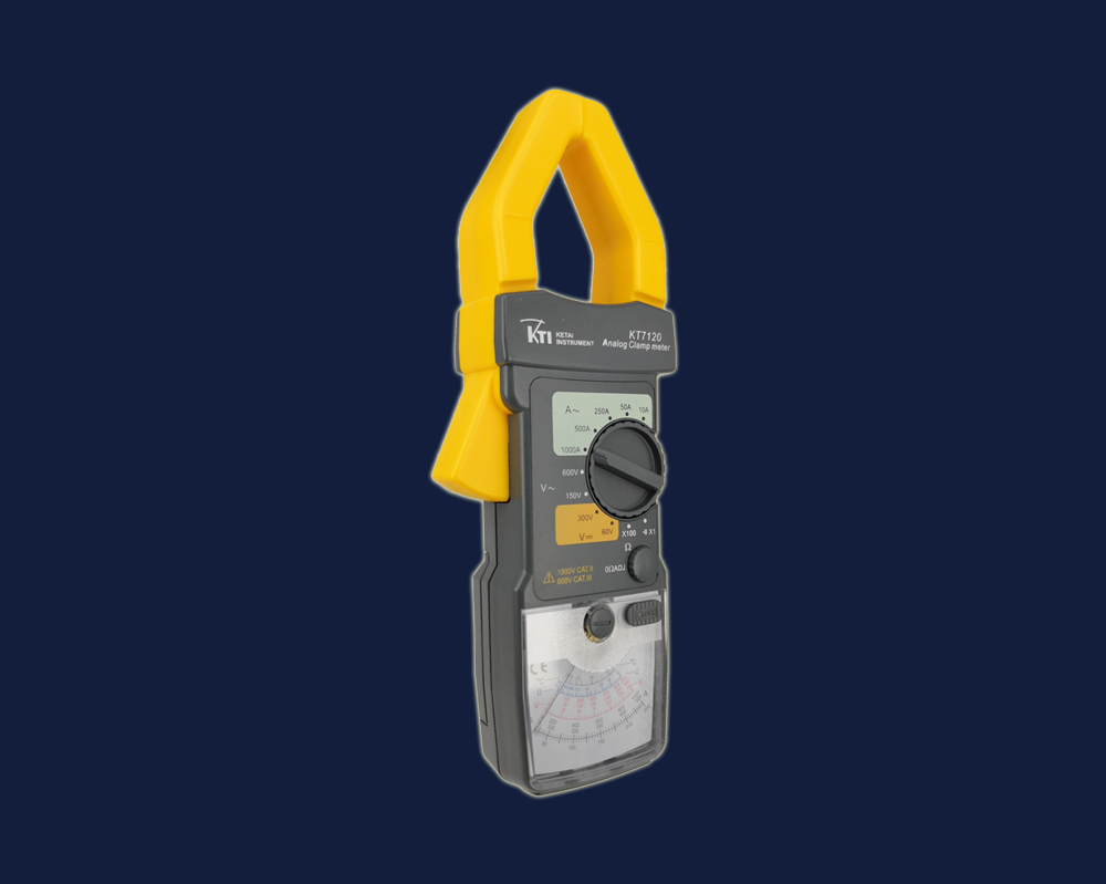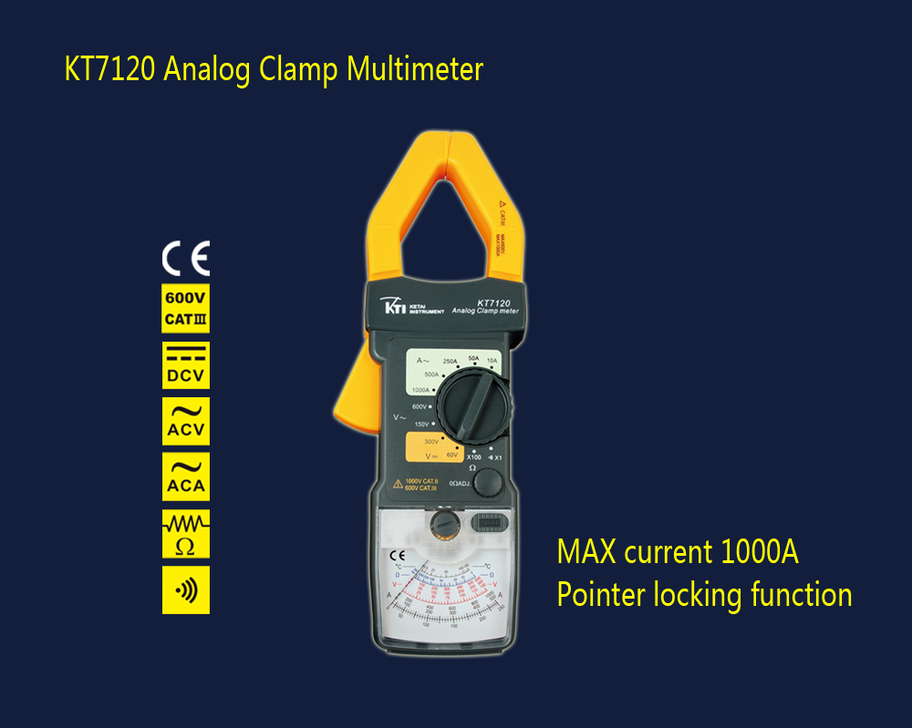 The KT7120 analog clamp meter features the lock pin function, which can also be considered as "hold" function. In some measurements, the reading of the pointer cannot be seen directly,in such cases, the lock pin can be pushed to lock the pointer and hold the reading after the measurement is completed, release the lock pin to return to normal state.