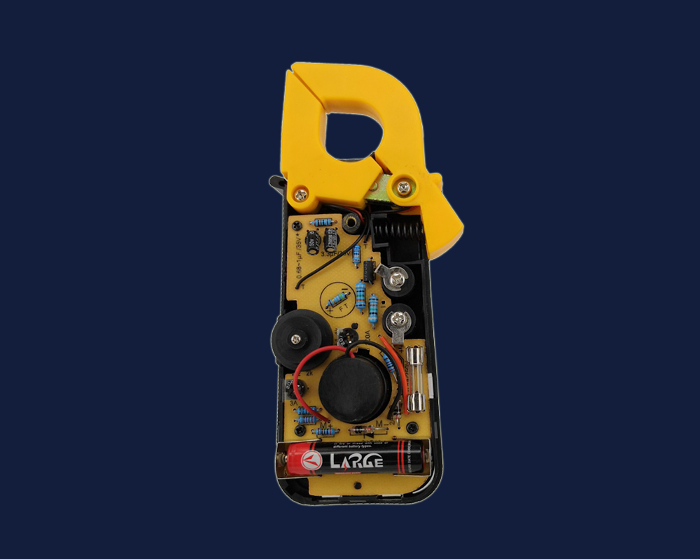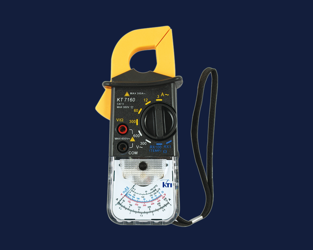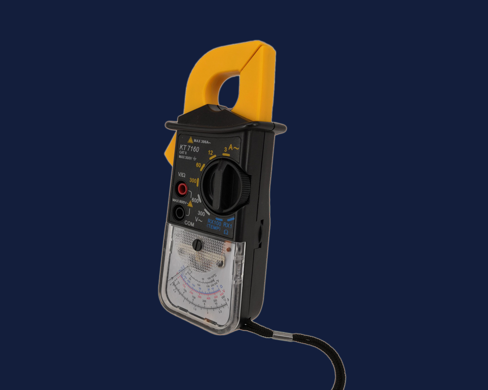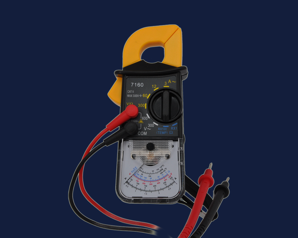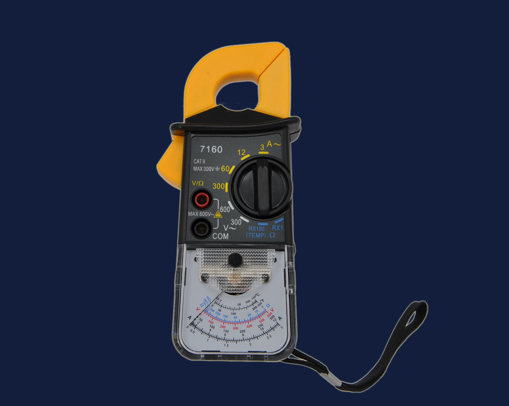The analog clamp meter senses the current by conductor and through internal conversion the meter head indicates the reading.
