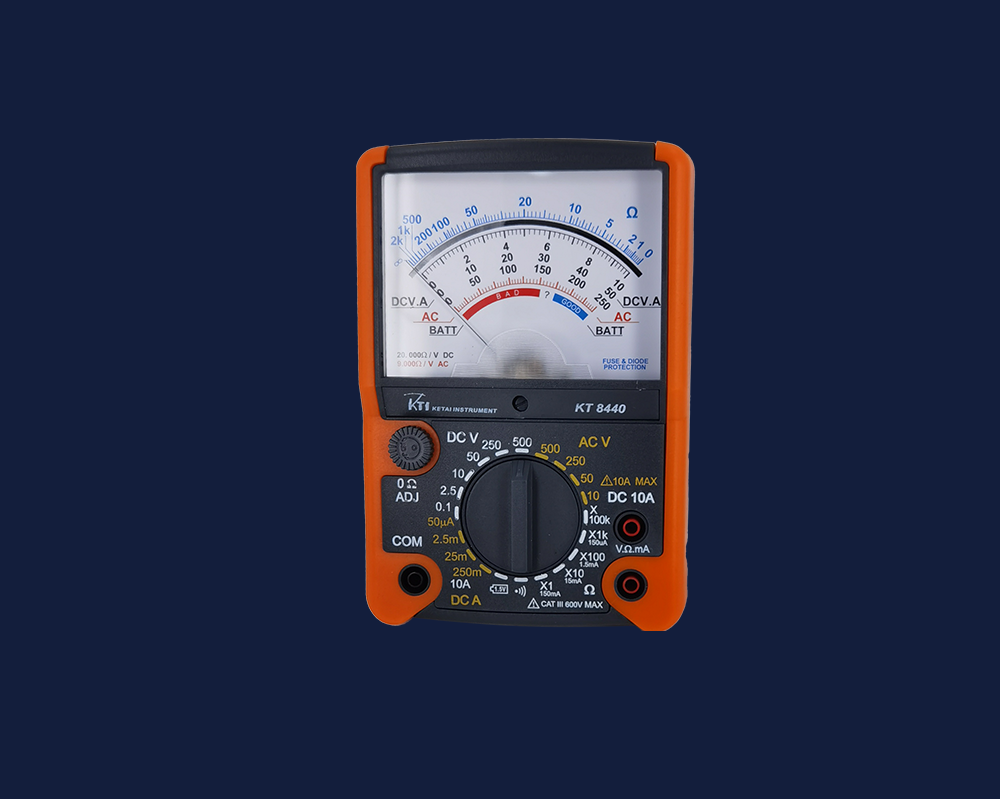 HIGH SENSITIVITY AND ACCURACY ANALOG MULTIMETER MOST UPDATED DESIGN AND GREAT HANDLE FEELING LARGE DISPLAY AND HANGING SUPPORTER KT8400 series pointer multimeter Meets the European standard CAT III 600V and has passed LVD, EMC, and ROSH certifications, creating conditions for entering the European market.